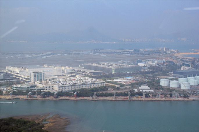 沿途还能看到香港国际机场,以及周边的楼宇,成群的,整齐的,可以当作是天空下的一件件艺术品!