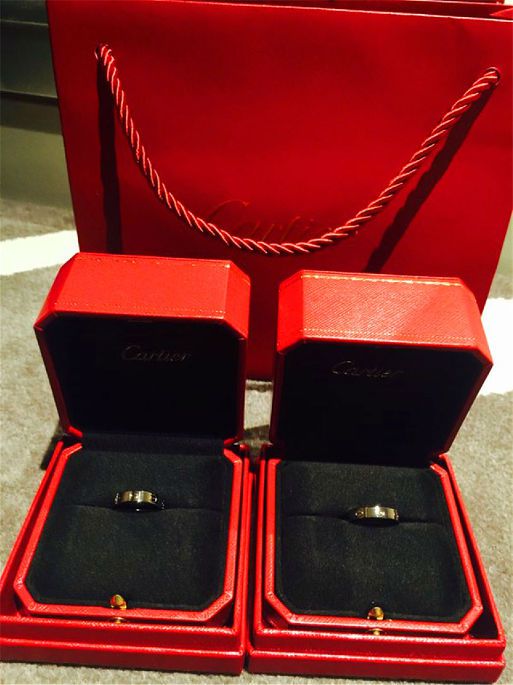 代表一生的承诺,终于拥有了人生的第一只一克拉的钻戒。而我和男友一开始想买 tiffnay的对戒,想想还是买个简单低调的款式,最后还是定了cartier的love款,9000港币一个。