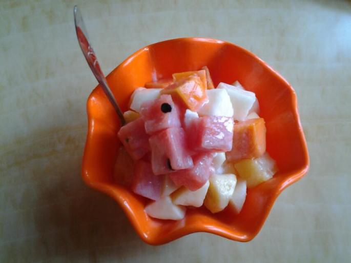 木瓜也是几元一个,皮儿还有些青,但是里面的瓤竟然是红色的,相当甜!