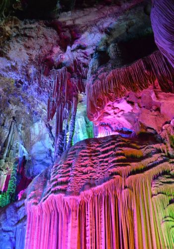 岩景区是桂林最大的岩洞,各色各样的钟乳石都很美,里面的暗河瀑布也很壮观,有动有静的水景也令**连忘返。