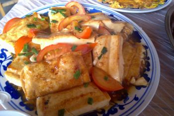 关于这顿饭,我们在这个农家餐馆要了三个菜:剑骨鱼、豆腐和香煎土鸡蛋。鱼1斤9两,每斤68元,这里吃鱼要比阳朔的便宜,而且这里的鱼是真正的漓江鱼。鱼做得非常非常好吃推荐,比起椿记烧鹅的鱼还好吃!饭店曾推荐豆腐是他们家自己磨的,也很好吃,我们要了一个,味道不错。