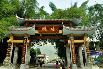 杨堤两岸翠竹成林,连成十里的绿色翠屏,摇曳在青山、秀水、飞瀑、浅滩之