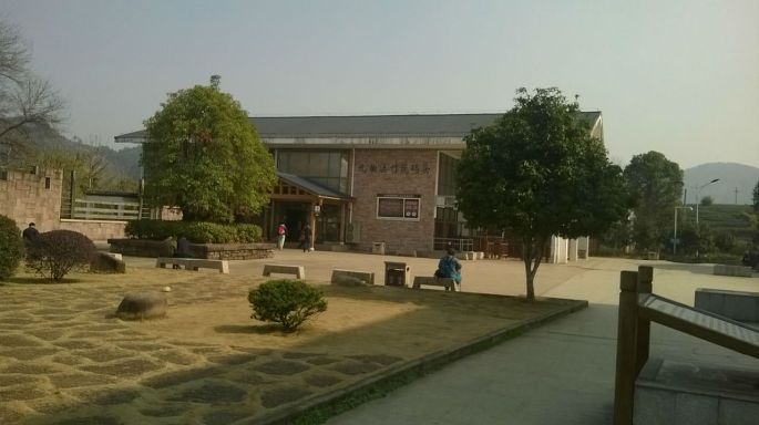 在这片复建的景观群中有一个柳永纪念馆,她就坐落在九曲溪畔的山坡之上。从溪边拾级而上首先映入游人眼帘的就是这座立在纪念馆前的牌坊。通过设在牌坊后面的正门就是纪念馆的展示厅了。