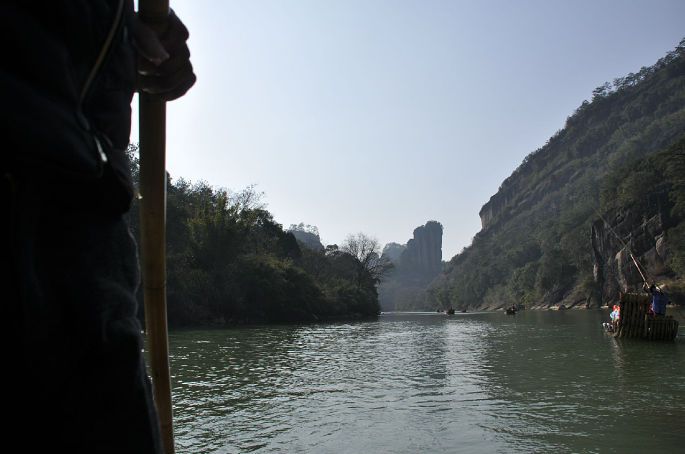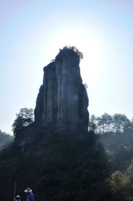 选择下午漂流,虽然升高了不少的气温可以让人避开冬季清晨的低温,但这时站在太阳的前面的玉女峰却给游客们的观赏和拍摄都带来了很大的困难。