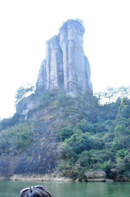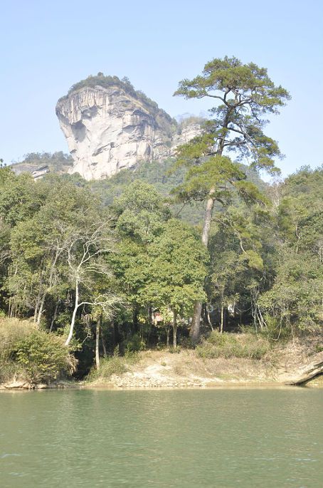 大王峰就坐落在离漂流终点码头所在的武夷宫景区附近。看到了大王峰就说明这里离本次漂流的终点也就不远了。这溪边的树丛中似乎还隐藏着些什么?