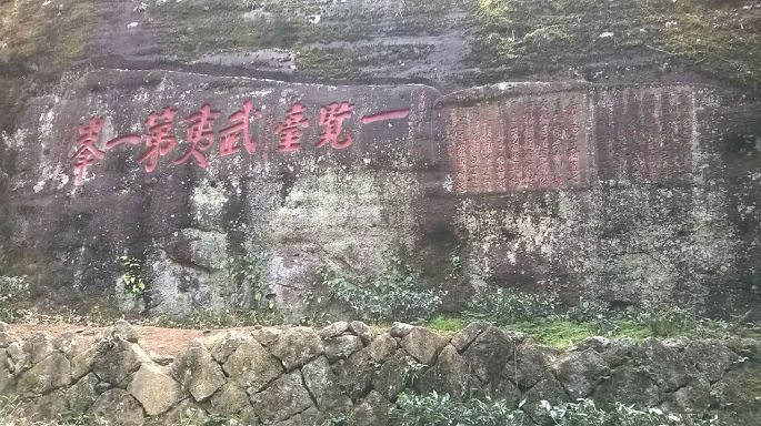 在红袍景区入口的陡岩下的有一些石刻。