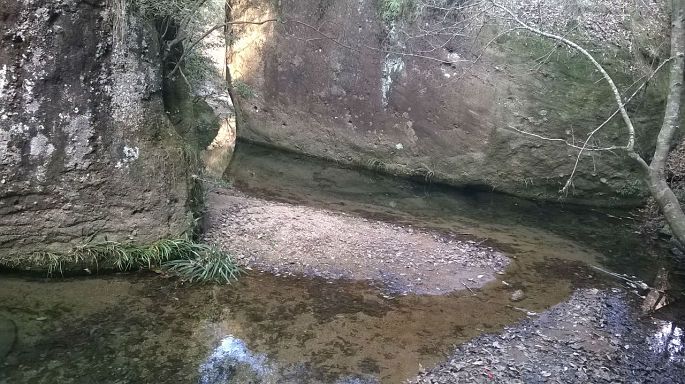 翻过大红袍景点的那个山坡后,这边小路旁的溪水就都是流往水帘洞方向的了。虽然没有人明示但由此来看大红袍旁的那个山坡其实就是一个分水岭呀。