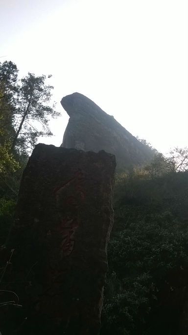 天游峰景区位于九曲溪第六曲的北侧,她与云窝和桃源洞两个景区相邻。在这些景区中著名的自然、人文和地质景观有很多,由于时间的关系这次某把行程的重点放在了对天游峰的游览之上,而对沿途的景点则以下山后剩余时间的多寡再来满足。最后的结果表明,这样的安排对于最终可以按计划走完全部计划的景区起到了关键的作用。从停车场下车后到达天游峰的脚下还有很长的一段路要走。在路的两侧有许多引人关注的景致在诱使游人停下自己匆匆的脚步。