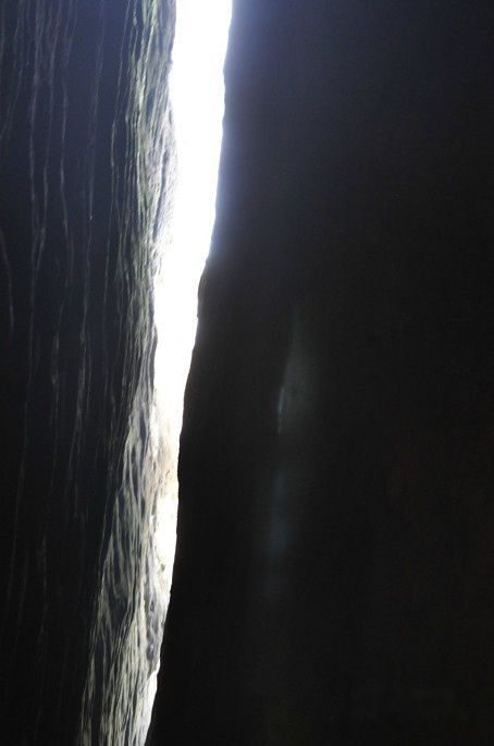 在缝隙最狭之处,像某这等腰围已超过一米三的人不变穿着也仍可不用费力的通过。其实游客在这里遇到的最大问题是在洞中黑暗的环境下辨识脚下的道路,此外从前行困难的游客身后那些不明就里的游客口中所发出的阵阵催促声也是处于困境中的游客们所必需认真对待的一大难题。而这些在洞外的提示牌上却都并没有涉及。