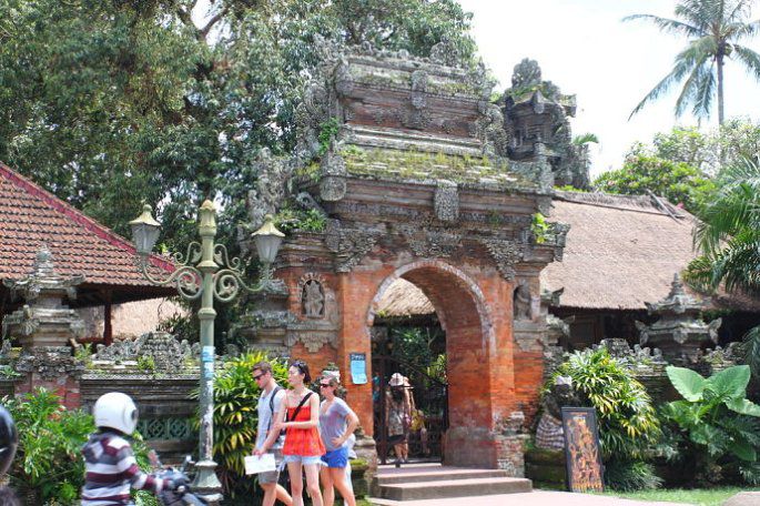 之后我们前往久负盛名的乌布皇宫,说是皇宫,比起中国的故宫简直太袖珍了。乌布皇宫只开放了一部分,现在里面还住着皇室的后人,所以我们也只能在门口拍了有限的一些照片。乌布皇宫附近就是SUKAWATI传统市场,东西倒是不贵,但也没觉得有什么可买的。索性和老公在街边小店吃上了冰淇淋,午餐是享用印尼特色的脏鸭餐,鸭子酥脆,辣酱甜香,拌着米饭很好吃,其他小菜的口味不是太习惯,味道一般。