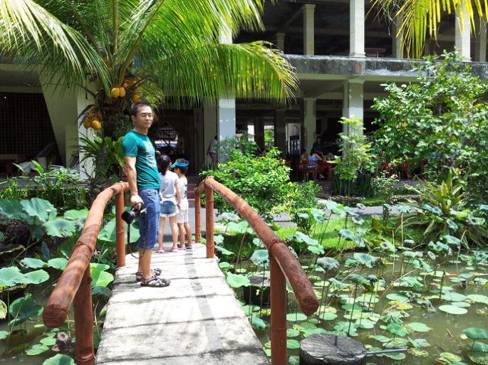 跟团就有两点不好,一是每天的行程安排都很紧,马不停蹄,时间不自由;二是进店购物比较多,谁让团费便宜呢,唉!第二天一大早七点半就被叫醒了,因为八点出发参观蜡染工艺和木雕工艺,其实就是为了让你消费。这是一个阳光明媚鸟语花香的早晨,满眼的绿色,田园气息浓厚。匆忙洗漱吃过丰富的早餐后就出发了。我们对蜡染和木雕工艺都兴趣不大,所以只在外面照了些照片。