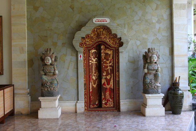 巴厘岛位于南纬8.7度,是热带气候,一年只有干季和雨季两个季节,常年气温在30度左右,现在正是它的雨季,每天都会有雷阵雨。雅加达也位于南纬,气候和巴厘岛一样,刚下飞机就感受到了热浪,但是比起寒冷的北京舒服多了。印尼是落地签,排队等候签证,印尼人的工作效率真是不敢恭维,就一个字“慢”,怪不得他们的大街小巷到处都有发呆亭,这就是他们的习惯,喜欢发呆,这也是在接下来的几天里深有感触。飞机自然也是不能正点起飞,又晚点了一个多小时。雅加达比北京晚一个小时,但巴厘岛和北京没有时差。我们等于绕远了,往西多飞了,然后再往东飞一个多小时,于晚间九点多抵达巴厘岛。出机场后当地导游已经在等候我们了,为我们献上了纷香扑鼻的鸡蛋花,鸡蛋花是巴厘岛的岛花。坐上大巴又驱车一个多小时抵达乌布,入住乡间VILLA。夜里一点终于躺到了床上,这一天折腾了将近24小时,真叫累啊!