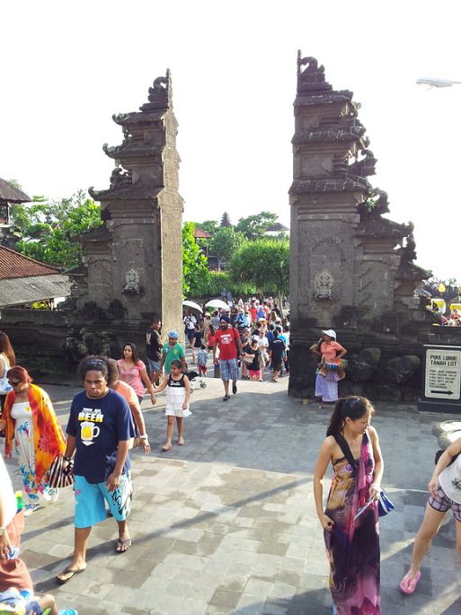 跟团就是比较辛苦,项目一个接着一个,漂流过后我们就驱车前往海神庙。此庙建于海中岩石上,六百多年来在波涛汹涌的印度洋海浪冲蚀下依旧巍然耸立。涨潮时四周为海环绕,仿佛浮在海中,更衬托出它的美丽与神秘。通往海神庙的街道两旁开满了各式小店,可以在此购买些小礼品及沙滩裙,价格还比较实惠。晚饭又是免税店提供的,免不了又让大家消费了一把。