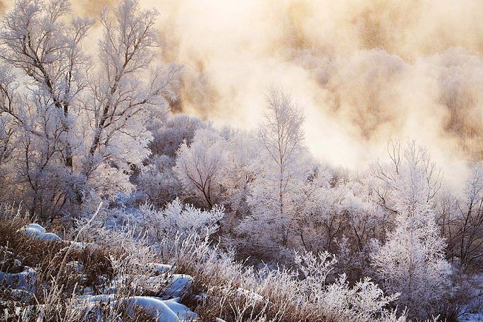 忽然感到自己出现在这里,似乎是一种多余,于是调整呼吸。连大气也不敢出,生怕惊扰了雾凇的美梦。