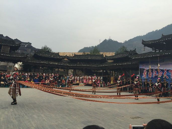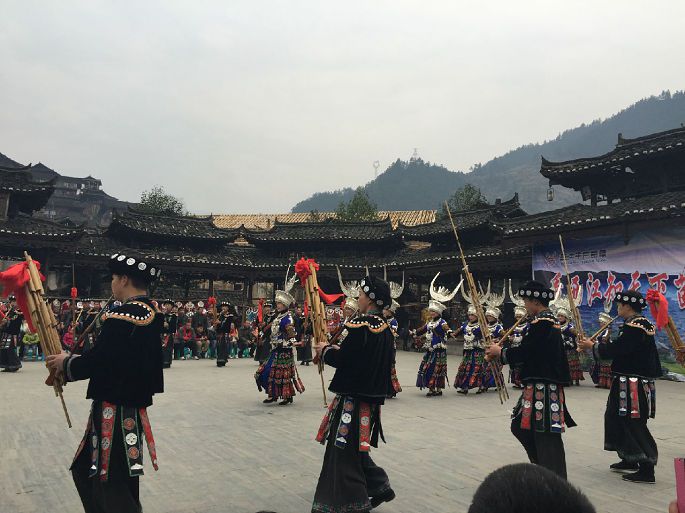 博物馆门口斜对着有个大广场,每天的固定时间都会有免费的苗族歌舞表演欣赏。有游客说:上午11点、下午5点各一场,也有当地人说下午两场分别是三点半和五点半,两场的区别在于:三点半那场以老人表演为主,五点半那场以年轻人表演为主。具体情况,到达景区问工作人员会比较清楚。我们只看了五点半那场,表演时长约30分钟,确实值得一看!