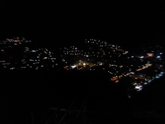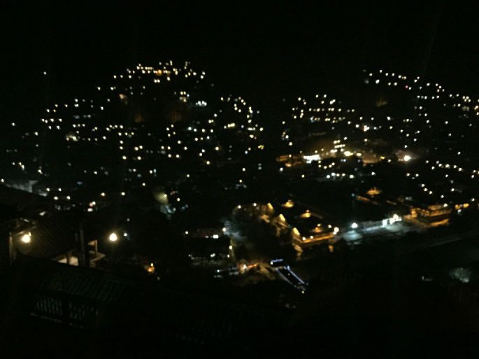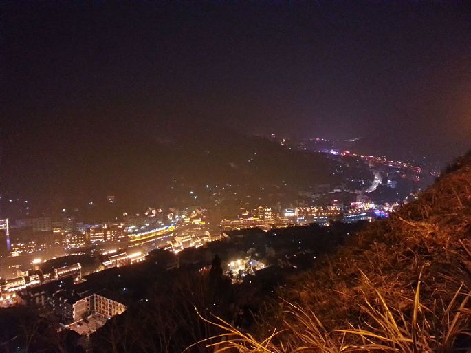 那晚,同住在客栈的,还有另外4位来自贵阳的游客,他们提议一起下去到观景台那边去看夜景。于是乎,我们一行共8人一起有说有笑地走去、走回。在这一过程中,需要特别鸣谢yan童鞋对我的呵护有加!因为我喝完酒后,头感觉晕晕地,晚上下台阶我担心摔倒,所以一路上都是她在前面带路牵着我手走下去的。假如没有她,估计我下台阶会比较困难。
