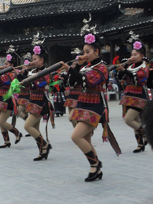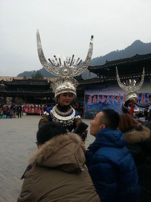 西江妇女的服饰和打扮比较特别,她们和别处的苗族妇女不太一样,每个人的头上都梳着高高的发髻,上面还要插一朵大红花。据说,西江的苗族是最古老的苗族的分支,他们还保持着汉唐遗风。自唐朝他们从别处迁来此地时,就保持着这样的发饰,一直沿用至今。我所了解到的就是她们的盛装哪怕平时不穿,但家里起码有放着,在重大的节日便穿上。
