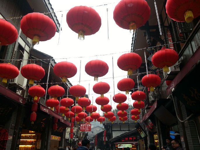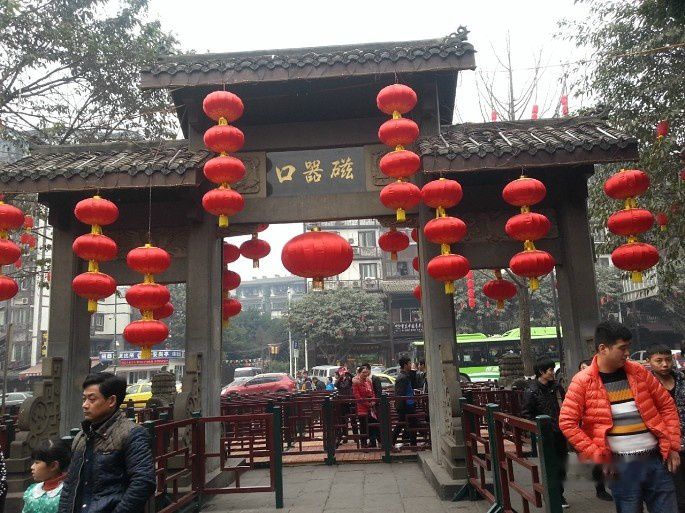 磁器口古镇始建于宋代,作为嘉陵江边重要的水陆码头,曾经“白日里千人拱手,入夜后万盏明灯”繁盛一时,被赞誉为“小重庆”。1998年磁器口古镇被国务院确定为重庆市重点保护传统街,2010年入选中国历史文化名街,是历经千年变迁而保存至今的重庆市重点保护传统街。这街道的知名度其实相当于外地客人来广州必游北京路、上下九路那样的有名气。小吃多,各样式的文化多,还有一个就是“人多”!