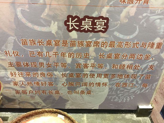 想了解更多的苗族文化,当然少不了到博物馆去了解。我对吃的比较感兴趣,因此只记住了苗族特色——长桌宴。有机会再去的时候,希望可以吃上吧。