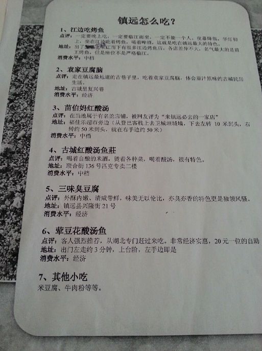 到达客栈后 ,发现老板出去购物没回来,于是乎细细欣赏起他家客栈墙壁上的“佳作”。一面墙壁贴满了相框,另一面则是镇远地图以及吃喝玩乐的实用指南。
