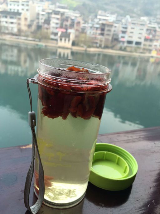 那晚,搭食的除了我俩还有另外两个来自贵阳的游客与他们家一起吃饭,共10人。吃着吃着老板就问:“你们需要喝酒吗?试试我们自己家酿制的米酒吧。”我一直都以为是用酒糟发酵的甜糯米酒,所以答应试一试,毕竟是他们这边的一道特色。酒上来了!一到嘴里去,哇~~~原来是白米酒,我可以确定那个度数起码30度以上啊,有人说那酒38度。
