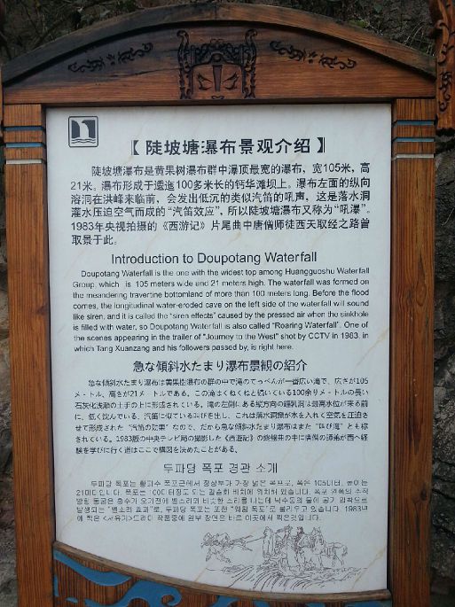 出发时,与我们同坐一起的,有来自郑州的4位朋友,虽然都是上了年纪的大妈,但他们非常热爱户外运动,到景区玩都喜欢徒步。有个阿姨已经退休14年了,由于喜欢玩户外,所以看起来还很年轻。同时,还巧遇了同样来自广州的两位帅哥。载我们去黄果树的司机非常的幽默健谈,据他自己介绍曾给旅游公司当司机,后来自己跳槽出来了,所以能给我们当半个导游了。一路上,嘴巴说个不同,为人还是挺不错的,在五十分钟的车程给我们讲了很多关于贵州的文化以及旅游应注意的陷阱以及一些处理方式。