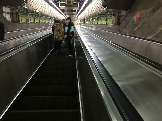 根据入住旅舍提供的到达指引,我们从火车站出口走向左手边的轻轨入口。这个既长又陡的电梯乘坐一次需要2元/人。