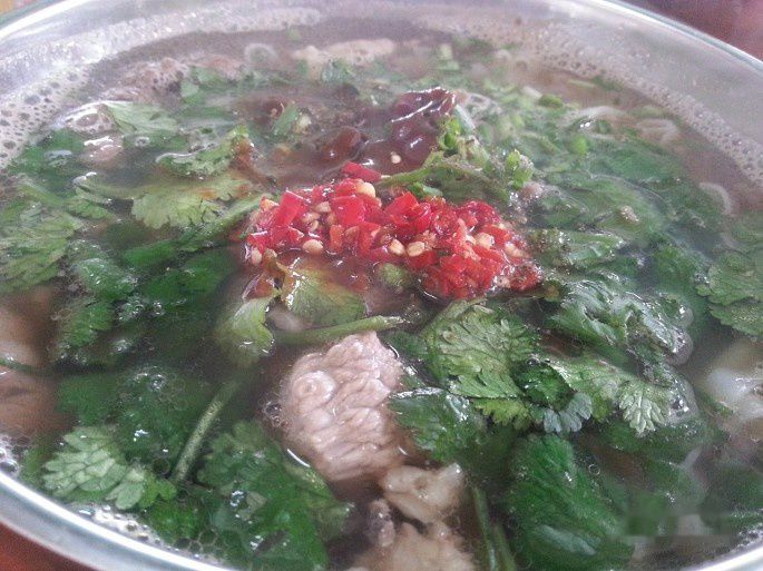 这锅叫啥,忘了,只知道里面放了牛肉、大蒜、辣椒,还有类似于猪皮的东东,忘记是什么了,估计是苗寨特有的一种食品吧。