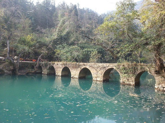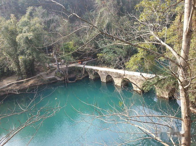 可以先看到小七孔桥;从西大门进的话,则最先看到“卧龙潭”。逛景区的方式有两种:一是花40块钱坐观光车(会在主要的景点停,但有些不那么知名的景点,比如龟背上原始森林、双龙瀑布等则不会停靠);二是徒步,东门到西门