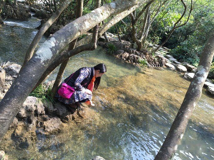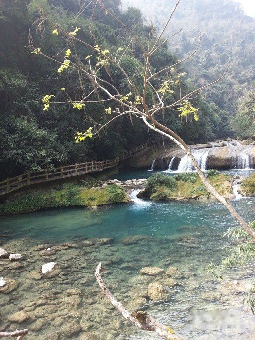 涵碧潭上游长1.6公里的狭窄山谷里,沿高高低低的河床,错落着68级瀑布和跌水。专家们考证,如此众多而密集的瀑布、跌水,实属全国罕见。由于冬季出行,可观性虽然欠缺,但我们依然很开心!因为人少,玩起来舒心畅怀!