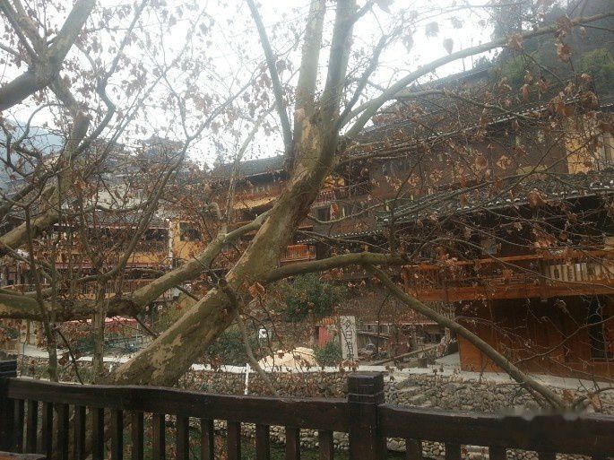 进入寨子后,发现入口的景观还是不错的。我在想:秋天的时候,这棵树应该全部都是红叶~~~然后很漂亮吧。