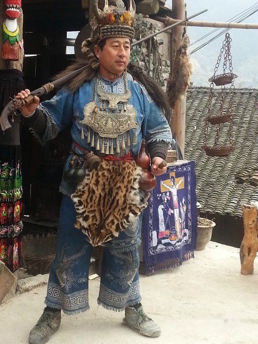 一路下台阶的时候,路过了此地,发现一位特别搞笑,摆造型摆得特别酷的大哥,他乐意让游客拍照而且不收钱!期间,他大方地拿了不同的道具进行各种造型演绎。