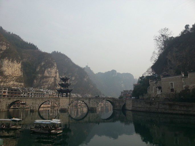11点多,我们到达了火车站,在附近的餐馆填饱了肚子后,就进站候车了。 随着火车的前行,一个小时左右,我们就来到了镇远火车站。火车站出来后,我们走出了小广场往右手边走到拐弯处打的到新大桥下车。客栈老板对我们说:其实5元/车就可以了,事实证明我们一看就知道是游客,那是不可行的,是要按人头算钱的。当然,坐公车或者走路到达(约30-40分钟)也可以。