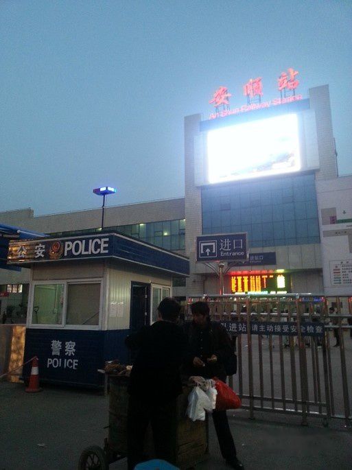 在景区门口旁边的客运站,我们顺利地买了返回安顺的车票(20元),接近六点,车子发班了!在我焦急着想,下车后还得马上打车到酒店拿行李,都不知道能不能准时赶上火车......突然得知:这车是直接回火车站的!我心里暗爽!实在太好了!简直就是人品爆发了!车子行走了约50分钟就到达了,一下车,我俩又是飞奔的节奏跑回酒店背起背包,然后买上一碗肠旺面再走向火车站。时间刚刚好!!!