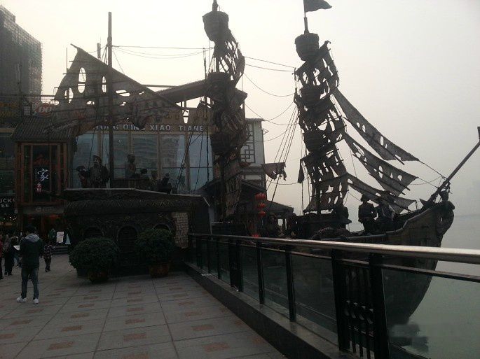 不知不觉,我们逛至五点才回到解放碑,在解放碑附近周旋了一圈后才终于找到了购物商场,眼看时间越来越少了,不管三七二十一,随便抓一把结账走人,商店出来,提着袋子又是满大街跑的节奏!回到旅舍,整理了一下行李,背起包后匆忙走了!