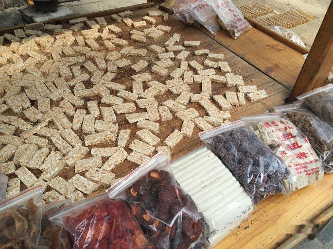 毛血旺、烩千张皮、椒盐花生号称古镇三宝或称三绝。