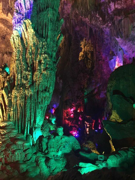 天星洞:是一个比较大的天然溶洞。里面的钟乳石大小不一,随处可见。洞里应该属于冬暖夏凉那种,冬天过来进去后会被热得要脱外套,四处弥漫着薄薄的一层雾气,加上五颜六色的灯光照射,有如仙境。洞里到处都会有滴水或者积水,由于灯光比较昏暗,因此上下台阶都需要注意安全。