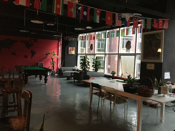中午十二点半,我们就开始往旅舍走。进入旅舍门口,就看见与网上描述得一模一样的大厅。
