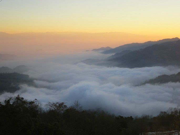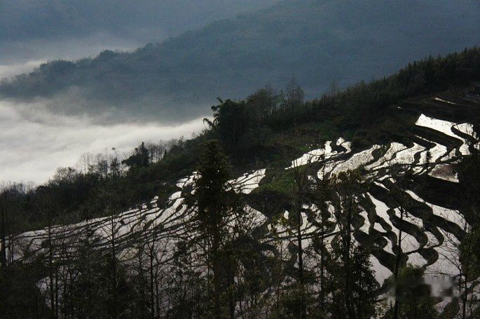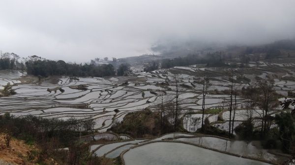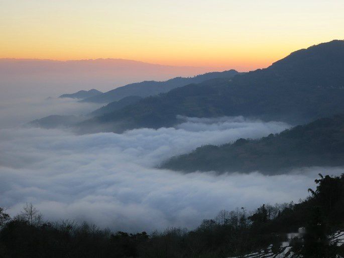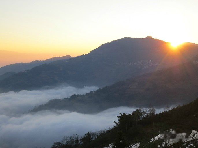 每年11月至次年2月,元阳梯田别有情趣,米高多次光顾。本次自驾路径元阳,米高入住在老元阳县城的一农家客栈。清晨,米高坐在客房内的窗户前观云海,静静等候日出。房屋下方的树林中掩映着一小片梯田,在漫漫云海的覆盖下,形成一道美丽的迷你景观。真好,观景不用出门,更不用买门票。