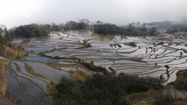 元阳是哀牢山夹缝中的一座县城,元阳的特殊地理位置及哀牢山特定的地形气候决定了元阳梯田必然形成为最独特的奇观。元阳梯田规模宏大,气势磅礴,绵延整个红河南岸的红河县、元阳县及绿春县。元阳梯田层层叠叠,弯弯曲曲。春季撒秧,夏季碧绿,秋季金黄,冬季灌水。