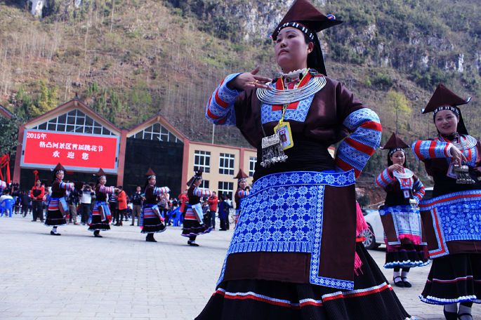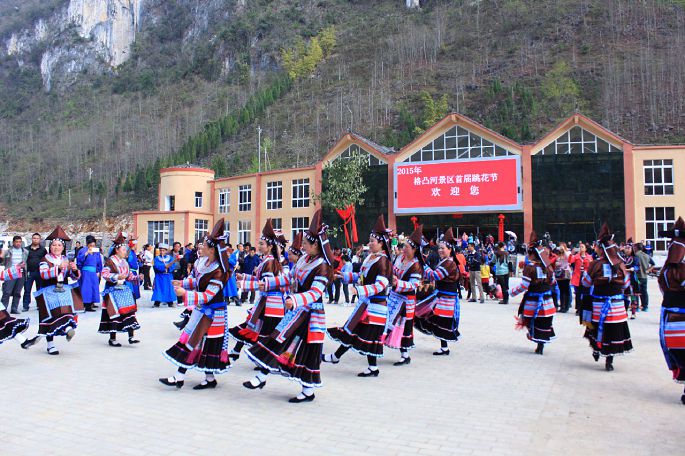 有一种缘分不用计划,自然而然的发生了,大年初二开始新年第一游,开车直奔格凸河,居然遇上紫云格凸河景区首届跳花节,体验了一次不可思议之旅。紫云当地有 “苗族不跳花,稻谷不扬花,苗族不跳花,男女不成家”的俗语,“格凸”在苗语里又意为跳花圣地,春节期间格凸河景区跳花节现场热闹非凡。