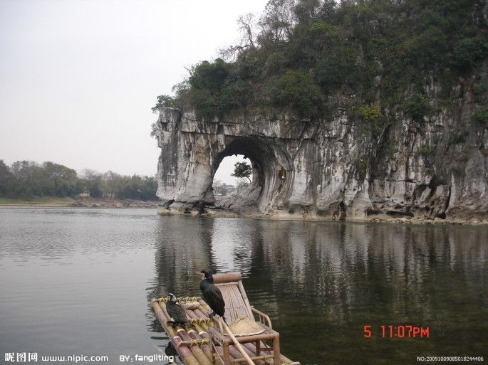 到码头后,联系到筏工师傅,卖花环的阿姨一路追到江边,我们5元买了3个,没想到后来拍了照还挺好看的,哈哈。漓江的景色不是吹出来的,确实漂亮,漂亮的一塌糊涂,相机很容易就没电了。筏工李斌师傅人很好,一路给我们讲解岸边形形色色的山,并会停下马达,让竹筏在江上漂着,在一处浅滩,李斌师傅还会主动将竹筏靠岸,让我们上去玩一会,拍拍照。杨堤到兴坪,近4个小时的行程,非常的惬意,非常的愉快。(李斌师傅的电话137---68--717----548)