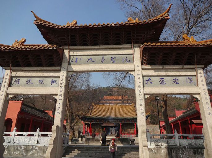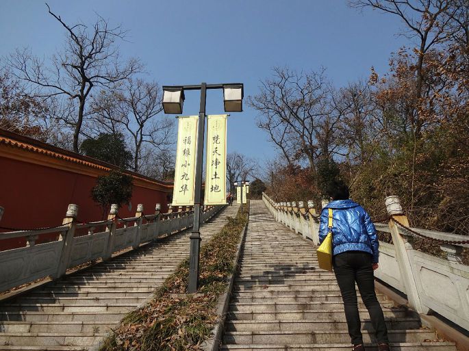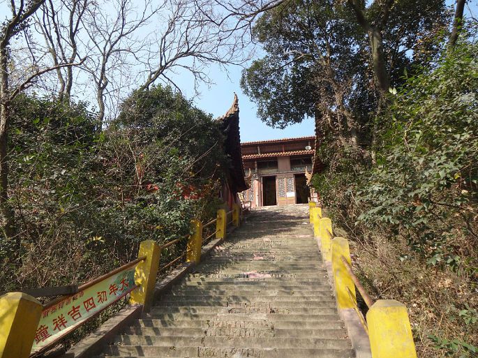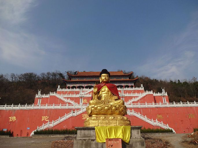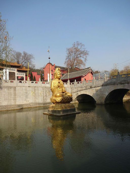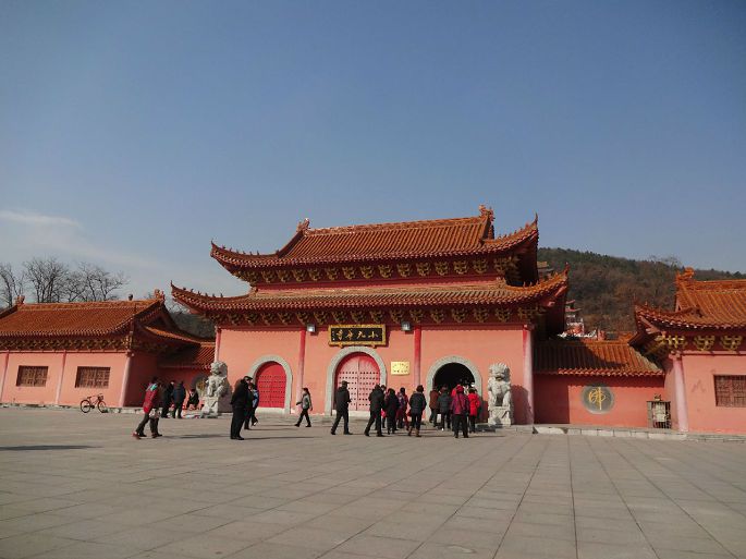 在马鞍山住了几十年,只去过一次,还是多年前。那时不通车,印象中有座简陋的小庙,扩建后没再去过。冬至前夕,动了念想。从市内乘26路或4路公交车在祈福路站下,左拐向前走100多米,来到山脚下,新落成的庙宇在阳光的辉映下格外醒目: