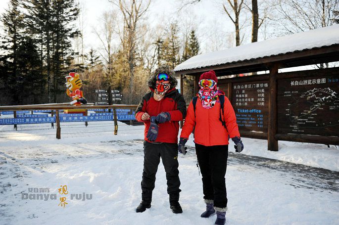 当晚,住在长白山脚下的一宾馆内,有当地人说,长白山天池山顶中的温度会达到-40度,极冷,一定多穿。因而,在去长白山时,我们把带的所有厚衣服都穿在了身上防寒,就差点租景区的棉大衣了。然而意外的,当天却是艳阳高照,气候温暖,拉我们上山的景区越野司机说,这是长白山冬天少有的暖和的一天,山顶气温也不过零下十几度,根本不冷。倒是让穿得太多的我们,在景区逛,出了一天的热汗。
