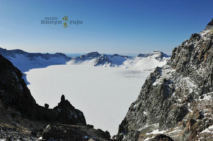 终于见到传说中的“天池”圣境了。冬天里,它已是白雪皑皑,一片沉静。