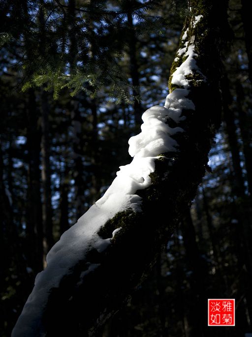 阳光下,冰雪的极寒冬日里,还能在森林里见到这清脆的绿,着实让人兴奋。