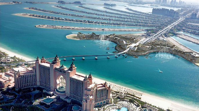 - 如今这条河依然为全迪拜人民服务,我们在这里吃的蔬菜水果,很多都是通过这条河从其他国家运来。