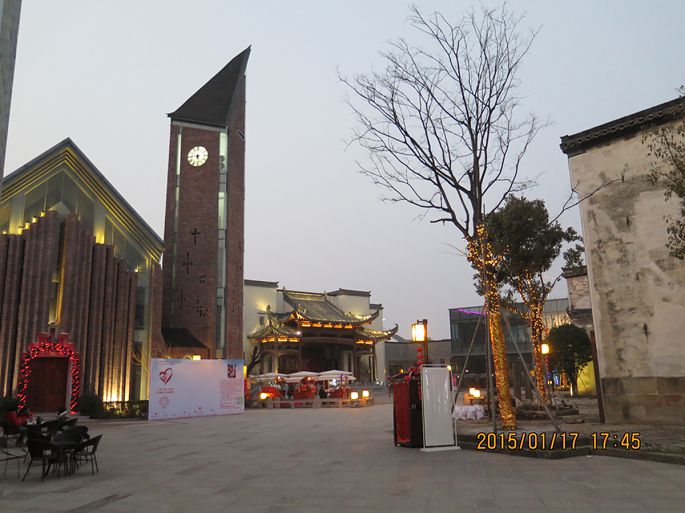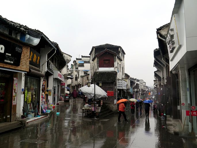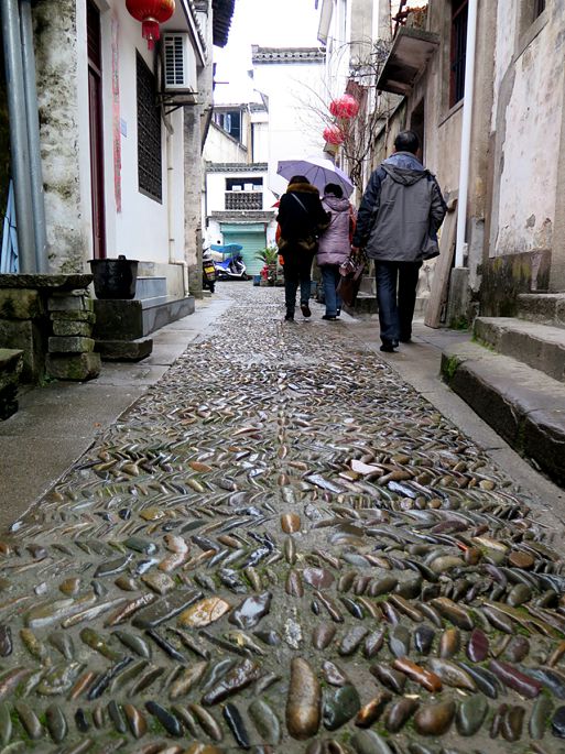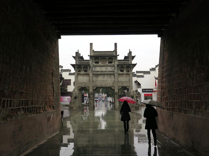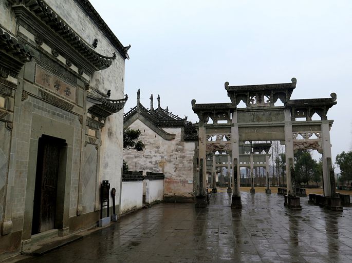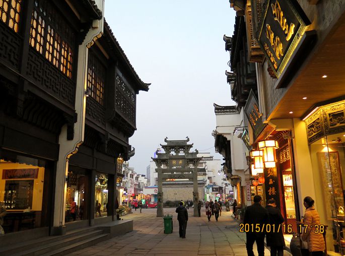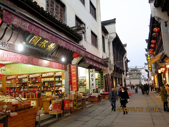 第二天,1月13日,一早退房,转住网上预定的万豪商务大酒店,淘宝预定的徽州古城一日游,旅行社小车8点20到酒店门前接,上车才知道今天报团只有我们2人,司机兼导游,共3人出行,旅行社承诺的1人也发团,还是有诚信的。由于阴雨绵绵,游人稀少,古城更显幽静和别有情调,我们先后参观了鲍家花园、牌坊群、渔梁古街,最后游徽州古城,,我们凭省摄影协会会员证,享受了全部景点的免票,司机最后给我们每人退了135元,其中120元是门票钱,15元是午餐费。也就是说我俩只花了共200元就享受了古城一日游的专程旅游包车,太值了哦。下午3点左右我们就结束旅程,返回酒店。考虑到明天要登黄山,上街买了运动鞋、雨伞和两天山上的干粮。