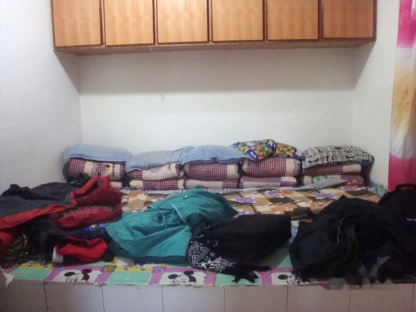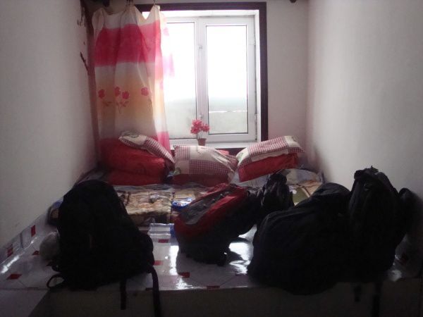 马导这时候过来跟我们商量,希望给我们调一调房,由五人间换到稍小的三人间。我们考察比较了一番,发现稍小的七号房带窗户,而五号房无窗,靠近卫生间。我们和议了一下转到了七号房。