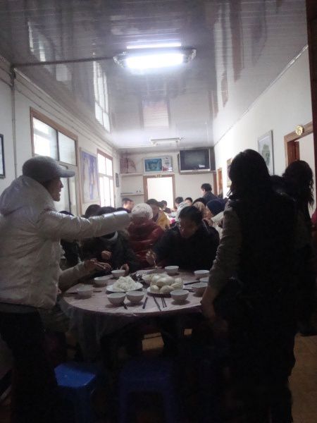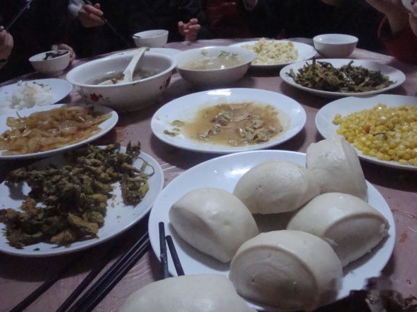 放下行囊洗把手准备就餐啦!大家的眼里瞪着“绿色”的光芒,饿啊!按照马导的叮嘱,晚了可就只能吃斋了(荤菜可谓“稍纵即逝”),这简直就是书写饿狼传说啊。八菜一汤全是山野口味,薄油少料,饭能管饱。到底是饿了,连平日对菜品最讲究的Fiona现在也开始真抓实干起来。